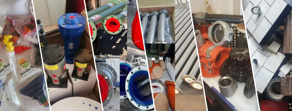 Independent Australian-owned supplier of pipe repair clamps, pipe repair bandages with specialised dry and wet, leak seal epoxy, Magnetic Wear Patch and linings, gaskets, seals, rubber, Alumina, silicon-carbide and PTFE ( Teflon ) lines pipes and valves, expansion joints, screen media with specialist mine hose and High-pressure hoses, HDPE pipe, valves for Hydro mining applications